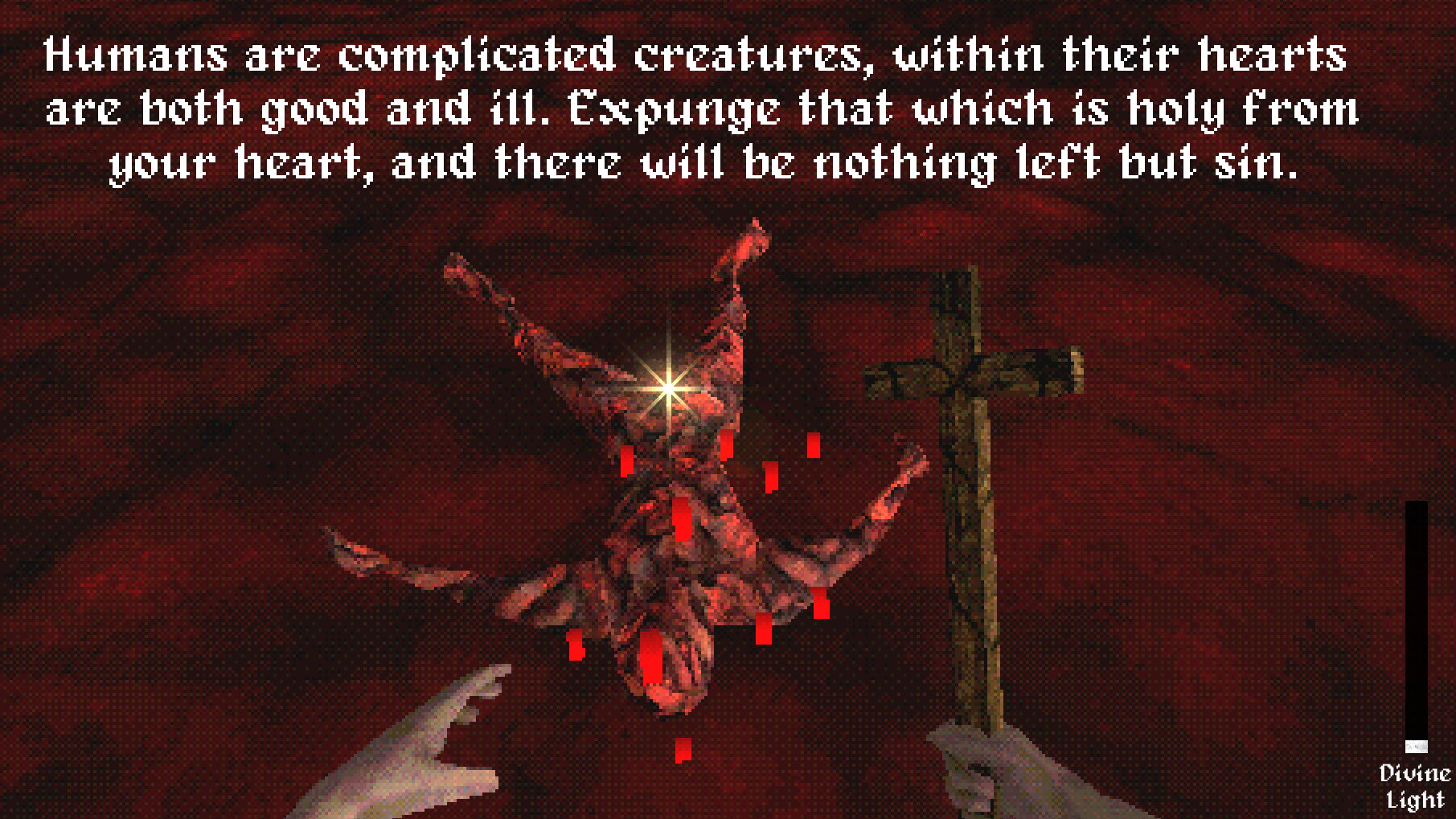 A preacher from humble beginnings descends down a path of corruption and sin, leeching off of faith to further his own wealth. Consume God's light by any means necessary, even if that means sacrificing the flock to feed the starving wolf. Avoid the ever watchful eyes of the shepherds, for their gaze can subdue even the most wicked of beasts.